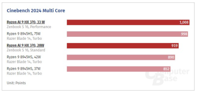 Обозреватели похвалили Ryzen AI 9 HX 370 за быстродействие в тестах продуктивности, где в большинстве случаев он продемонстрировал очень высокую производительность на фоне конкурентов, обладающих значительно более высокими показателями TDP.