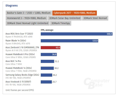 Обозреватели также похвалили энергоэффективность ноутбука Asus Zenbook S16. Например, портал Notebookchek отмечает, что его время автономной работы с батарей на 78 Вт·ч аналогично времени работы ноутбука Galaxy Book4 Pro 16 на базе Intel Core Ultra 7 155H с батареей на 76 Вт·ч. В то же время Asus Zenbook S16 не сильно (на 16 %) отстаёт по автономности от Galaxy Book4 Pro 16 на базе Arm-процессора Snapdragon X Elite X1E-80-100. Правда, решение на чипе Qualcomm оснащено менее ёмкой батарей на 61,8 Вт·ч.